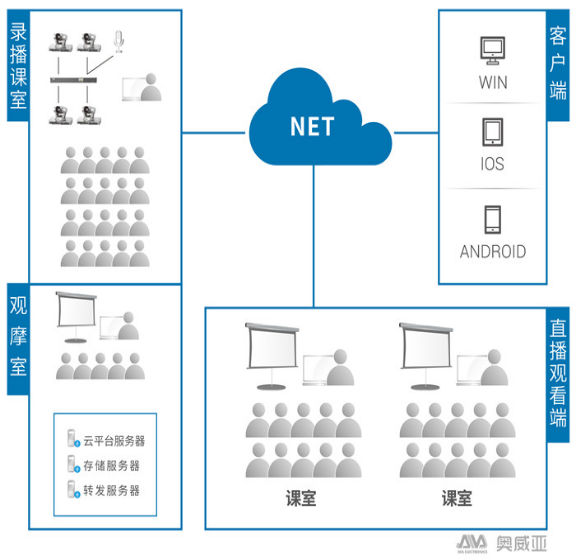 ????????利用AVA高清錄播系統(tǒng)全自動(dòng)和手動(dòng)錄制的方法,準(zhǔn)確、清晰的把老師課堂實(shí)況錄制下來,同時(shí)可通過網(wǎng)絡(luò)實(shí)時(shí)直播和視頻點(diǎn)播功能,讓學(xué)生在課中和課后進(jìn)行觀摩學(xué)習(xí),從而全面提升教學(xué)質(zhì)量,建設(shè)校本教學(xué)資源庫。
