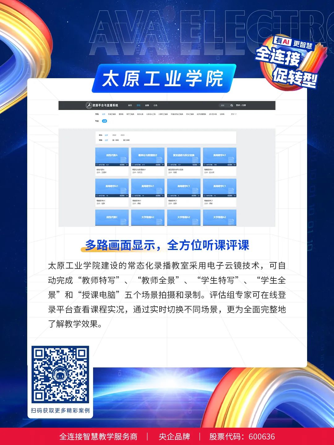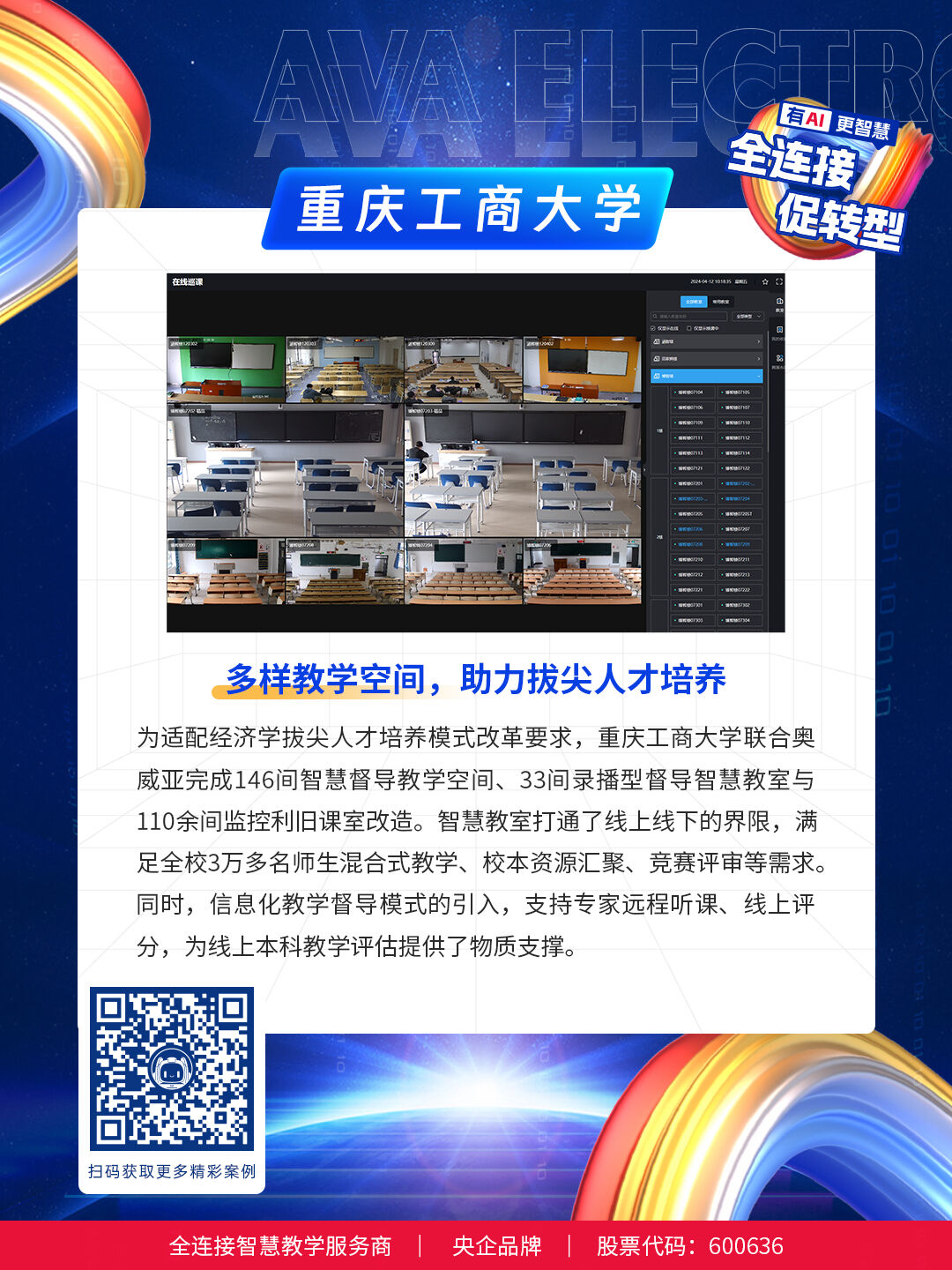 面向新一輪高校審核評估工作要求,奧威亞推出“AI督導巡課方案”,實時還原課堂、一鍵聽課、多視角呈現、評估過程全記錄、完整還原課堂實況,助力學校迎評促建。截止目前,奧威亞已助力全國多所高校順利完成教學評估工作。